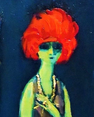 I can imagine her enjoying a post-dinner la passeggiata along the Grand Canal. Is she waiting to take a romantic gondola ride under the Bridge of Sighs or planning to sip prosecco in the Piazza San Marco? Whatever her destination, this painting captures a festive night out on the town.