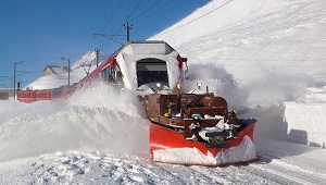 Modern Train Snowplow, Photo by David Gubler, Wikimedia Commons