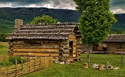 Log Cabins (reconstructed) at Martin’s Station, Photo by Virginia State Parks, Wikimedia Commons