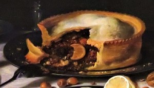 Still Life with a Pie, Sweetmeats, and Wine Glasses (1623-1625) by Pieter Claesz., AIC, Photo by cjverb (2019)-close up pie