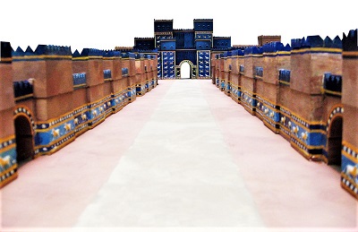 The main gate was dedicated to Ishtar, the goddess of love and war. Visitors had to walk beneath rows of brightly colored Mushhushshu-dragons and Adad-bulls through not one, but two gates. Once inside they spilled out onto Processional Way, a ½ mile long thoroughfare flanked by a series of snarling, life-sized lions, a symbol of Ishtar. The entire ensemble was designed to impress and intimidate not only visitors, but the citizens of Babylon.