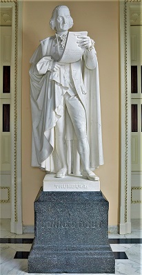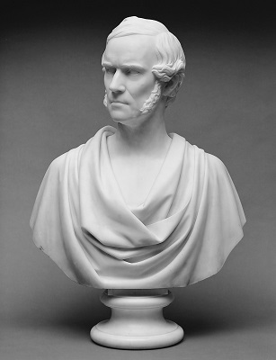 Chauncey Bradley Ives (1810-1894) was born on a farm near Mount Carmel, outside of Hamden, Connecticut. At age 15, he began an apprenticeship as a woodcarver in New Haven. In his mid-20s, Ives moved to Boston, and within a few years enrolled in the National Academy of Design in New York City. After completing his studies, Ives set up shop in Florence, Italy where he developed a reputation for crafting portrait busts of wealthy Americans. In the 1850s, he relocated to Rome. The state of Connecticut commissioned Ives in the 1870s, to create two statues of famous people from his home state to be placed in the US Capitol. In 1894, he died in Rome at the age of 84.