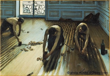 Right: Raboteurs de parquet (1875) by Gustave Caillebotte, Musée d’Orsay
