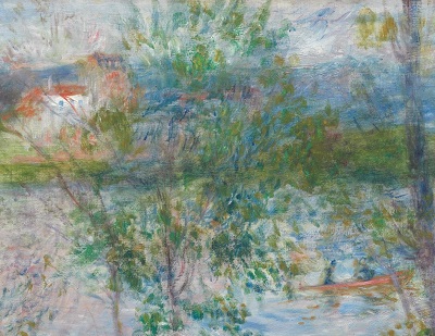 Artist Background: Pierre-Auguste Renoir (1841-1919) was born into a working-class family in Limoges, France. His mother was a seamstress and his father was a tailor. At age 13, Renoir took a job at the local porcelain factory painting flowers on cups, plates, and other dinnerware. In 1862, when he was 21, Renoir moved to Paris to study with painter, Charles Gleyre (1806-1874), along with soon-to-be friends and Impressionists, Frédéric Bazille (1841-1870), Claude Monet (1840-1926), and Alfred Sisley (1839-1899). The group spent their off hours painting en plein air, hoping their work would one day be selected by the Salon, Paris’s prestigious annual art exhibition. After several years of rejections, Renoir’s, Lise with a Parasol (1867) debuted at the Salon. His painting received favorable reviews and gave a boost to Renoir’s reputation as a portraitist and painter.