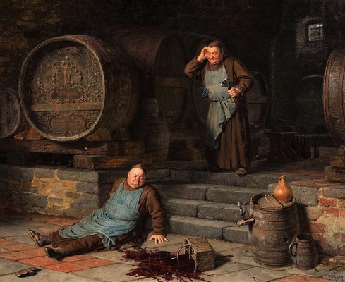 Right: Visit to the Wine Cellar (1906) by Eduard von Grützner, Wikimedia Commons