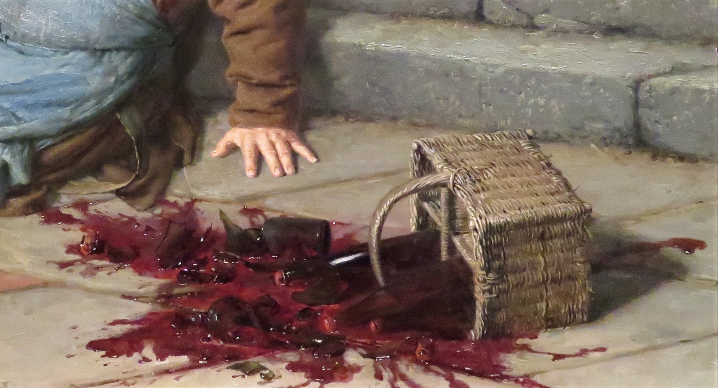 The Catastrophe (Close-Up of Tiles & Wine Splatter; 1892) by Eduard von Grützner, Milwaukee Art Museum
