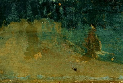 At first glance, Whistler’s painting appears almost monochromatic, simple, and lacking in depth. But as is true with most art, if viewers take their time, zoom in, and dig into the details they’ll notice a rich, colorful moment captured by the artist.