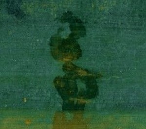 Moving counterclockwise, let’s begin with the colorful bits of light spattered across the night sky. Note how they rain down on the murky water below. On the left, the silhouette of a ship and shadowy tugboat peek out from behind thick swirls of smoke. Anchored on the Thames at Cremorne Gardens, the larger ship is the source of the shooting fireworks. In the foreground, ghostly figures appear to be kneeling along a sandy shore. A vertical, calligraphy-like script is situated in the lower right corner. This is not Whistler’s signature, but instead a nod to his love of ukiyo-e, a type of Japanese woodblock art.