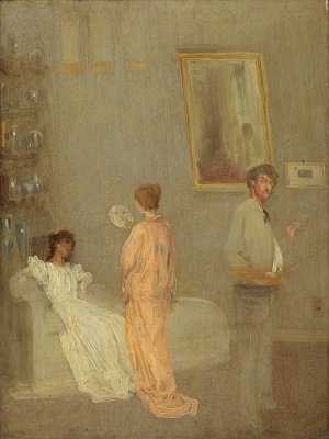 At age 18, Whistler enrolled in West Point Military Academy, but within a year was expelled for failing chemistry and his “aversion to authority”. Whistler subsequently took a job making maps for the US Coast and Geodetic Society. After several years, he moved to Paris, enrolled in private art classes and rubbed elbows with the art world’s up and coming artists. His debuts of At the Piano (1859) and Symphony in White No. 1, The White Girl (1862) were Whistler’s initial breakout works.