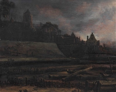 Artist Background: Aert van der Neer (c1603-1677) was born in the Dutch town of Gorinchem. He initially worked as a steward, managing the affairs of a local estate, but in his spare time, van der Neer liked to paint. Under the tutelage of his brother-in-law, landscape painter, Rafaël Govertsz Camphuysen (1597–1657), van der Neer became a skilled artist. In 1630, he moved with his wife, Lysbeth, to Amsterdam so he could paint full time.