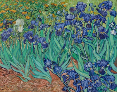 Left: Irises (1889) by Vincent van Gogh, Getty Museum; Right: Apple Blossom (1890) by Vincent van Gogh, Van Gogh Museum