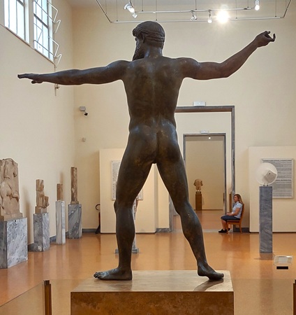 Right: Artemision Bronze (c460 BCE) Hellenic National Archaeological Museum, Photo by cjverb (2024)