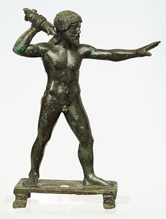 Left: Bronze figurine of Zeus Ceraunaeus hurling a lightning bolt (470-460 BCE) Hellenic National Archaeological Museum