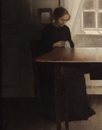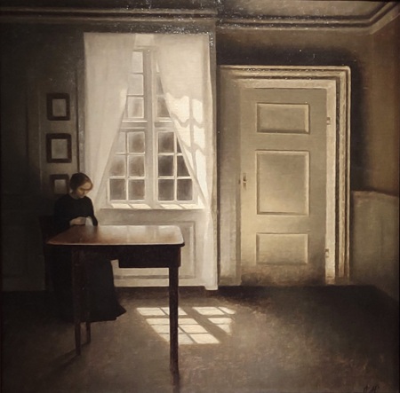 In 1914, Hammershøi contracted throat cancer. He died in Copenhagen two years later at the age of 51. His last painting was of Ida sewing in their apartment. If you’d like to see more of Hammershøi’s artwork, click on this Staten Museum for Kunst: Vilhelm Hammershøi Digital Archive link.