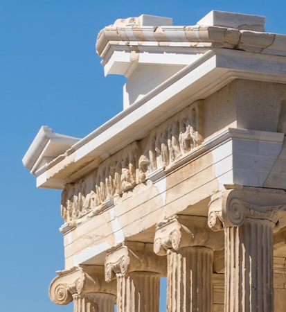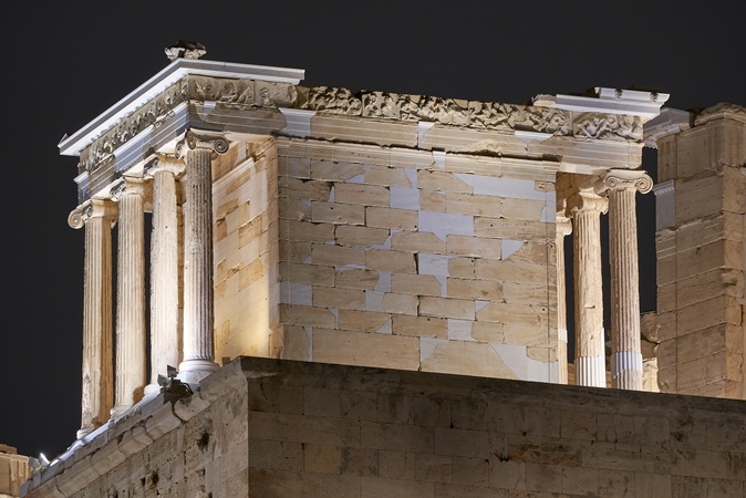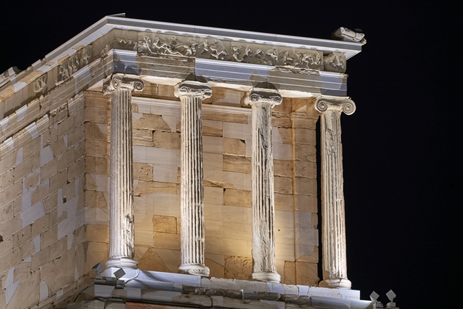 Iconic Ionic: The Temple of Athena Nike is the smallest structure on the grounds of the Acropolis. Made of Pentelic marble, this temple is an excellent example of the Ionic order, an architectural style designed by the ancient Greeks.